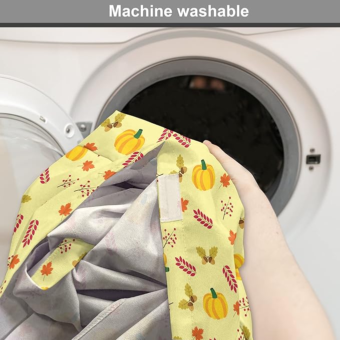 Lunarable Autumn Pumpkin Dog Crate Cover, Seasonal Image with Fall Botanical Elements Leaves and Acorns, Easy to Use Pet Kennel Cover for Cats & Medium Dogs, 30 Inch, Pastel Yellow Multicolor