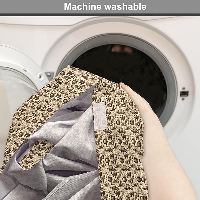 Lunarable Vintage Halloween Dog Crate Cover, Halloween Witch Hat Cauldron Fall Jack o' Lantern Black Cat, Easy to Use Pet Kennel Cover for Medium Large Dogs, 48 Inch, Pale Brown