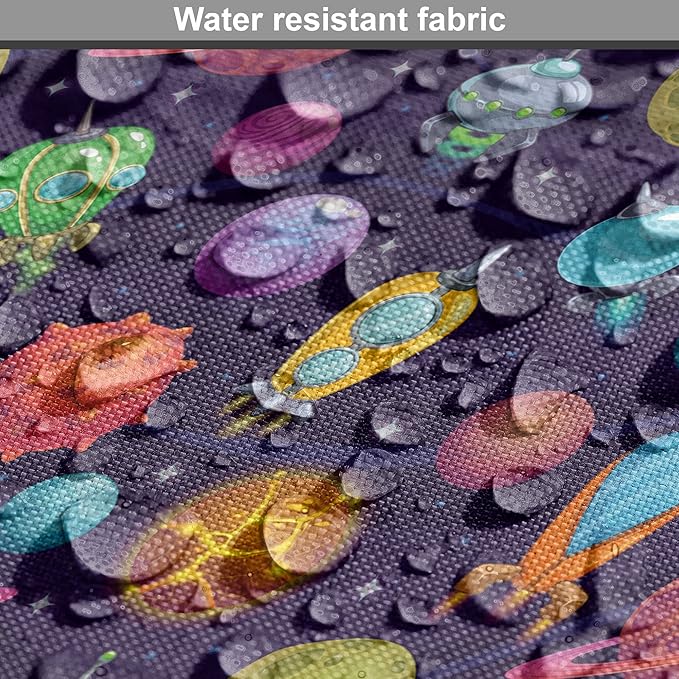 Lunarable Outer Space Dog Crate Cover, Cartoon Planets and Space Ships with Space Background Fun Science, Easy to Use Pet Kennel Cover for Medium Large Dogs, 42 Inch, Dark Blue