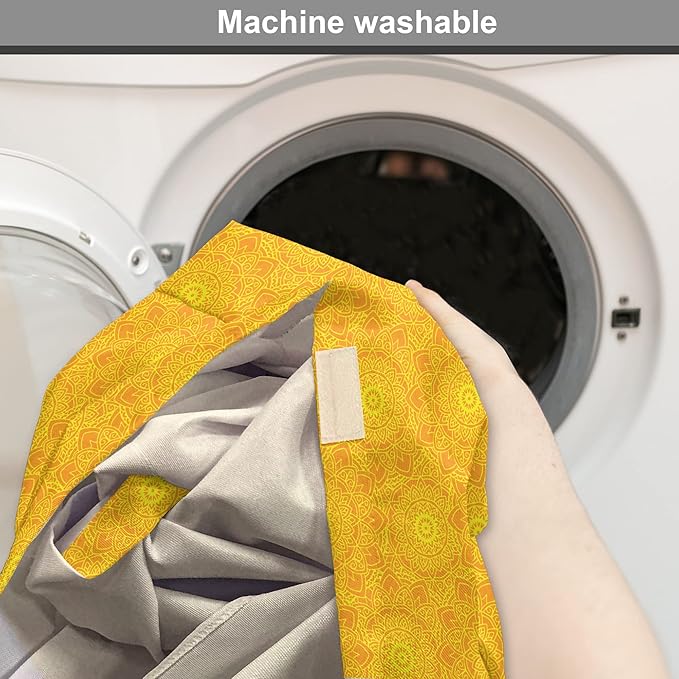 Lunarable Yellow Mandala Dog Crate Cover, Vibrant Colored Abstract Lotus Flowers Native Art Warm Sun Inspired, Easy to Use Pet Kennel Cover for Cats & Medium Dogs, 30 Inch, Yellow Orange
