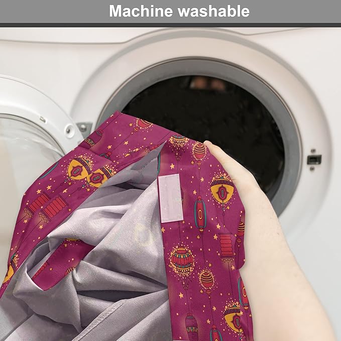 Lunarable Folkloric Dog Crate Cover, Cultural Inspirations Oriental Party Celebration Art Traditional Design, Easy to Use Pet Kennel Cover for Small Dogs Puppies Kittens, 18 Inch, Magenta and Yellow