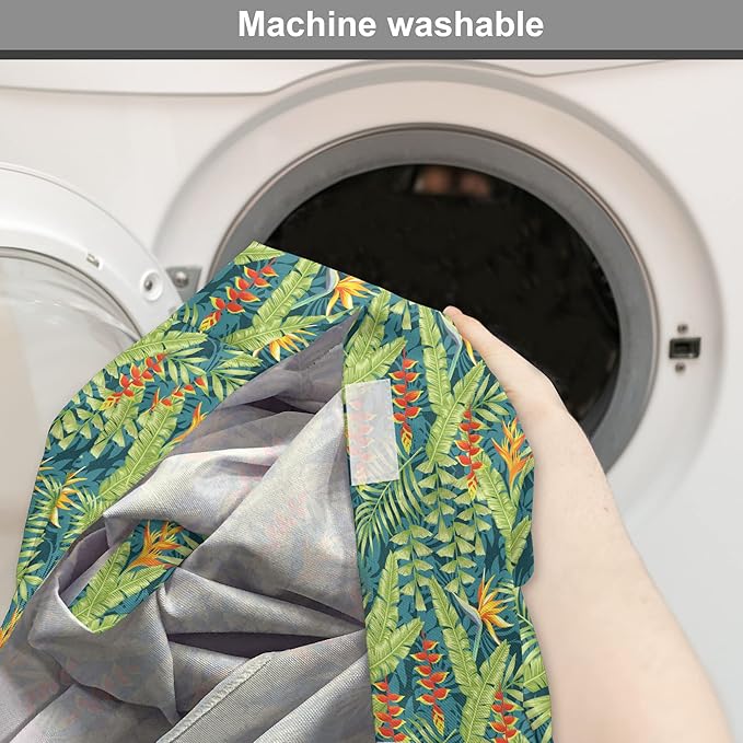Lunarable Tropical Dog Crate Cover, Exotic Bird of Paradise Blossoms Banana and Areca Fan Palm Leaves, Easy to Use Pet Kennel Cover for Medium Large Dogs, 48 Inch, Yellow Green and Dark Teal