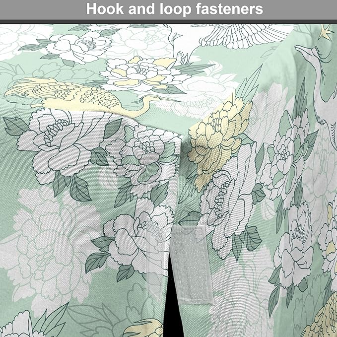 Lunarable Traditional Dog Crate Cover, Japanese Cranes Peonies Cultural Aspects Symbolic of Happy Life, Easy to Use Pet Kennel Cover for Medium Large Dogs, 48 Inch, Avocado Green Pale Green