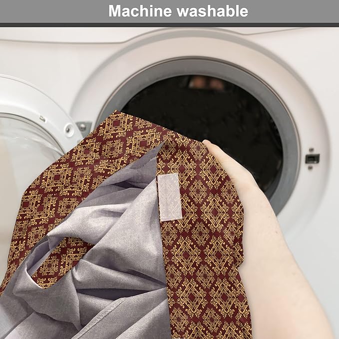 Lunarable Burgundy Dog Crate Cover, Royal Victorian Pattern with Antique Design Elements Baroque Swirls Squares, Easy to Use Pet Kennel Cover for Cats & Medium Dogs, 30 Inch, Burgundy Mustard