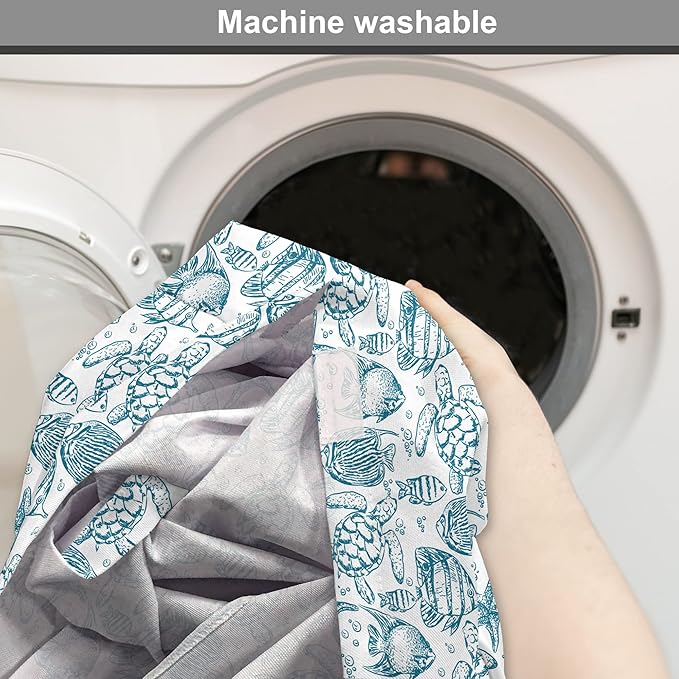 Lunarable Under The Sea Dog Crate Cover, Hand Drawn Sketch Art Style Fauna of The Sea Turtle Starfish and Fishes, Easy to Use Pet Kennel Cover for Cats & Medium Dogs, 24 Inch, Blue White