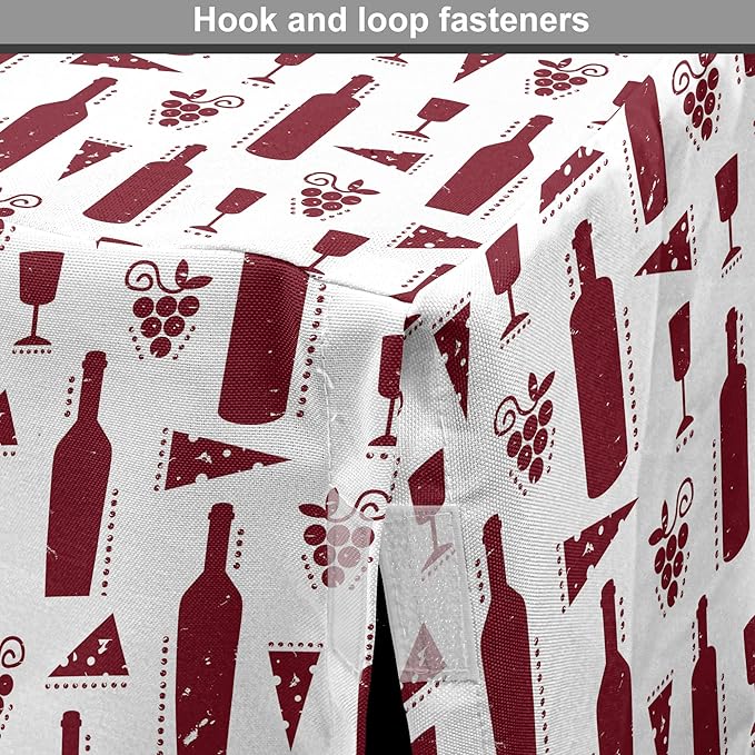 Lunarable Drinks Dog Crate Cover, Illustration of Grunge Style Wine Bottles Glasses Cheese and Grapes Vintage, Easy to Use Pet Kennel Cover for Medium Large Dogs, 48 Inch, Maroon and White