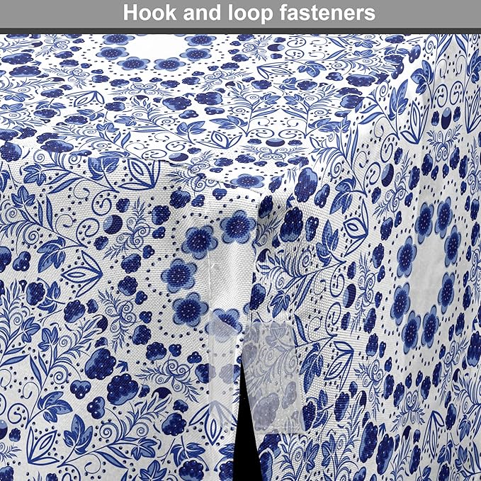 Lunarable Traditional Dog Crate Cover, Circular Flowers and Stripes Ethnic Gzhel Pattern Classic Motifs Art, Easy to Use Pet Kennel Cover for Small Dogs Puppies Kittens, 18 Inch, Pale Blue