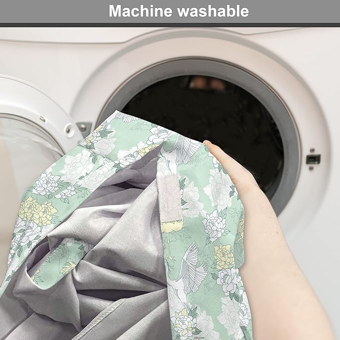 Lunarable Traditional Dog Crate Cover, Japanese Cranes Peonies Cultural Aspects Symbolic of Happy Life, Easy to Use Pet Kennel Cover for Cats & Medium Dogs, 30 Inch, Avocado Green Pale Green
