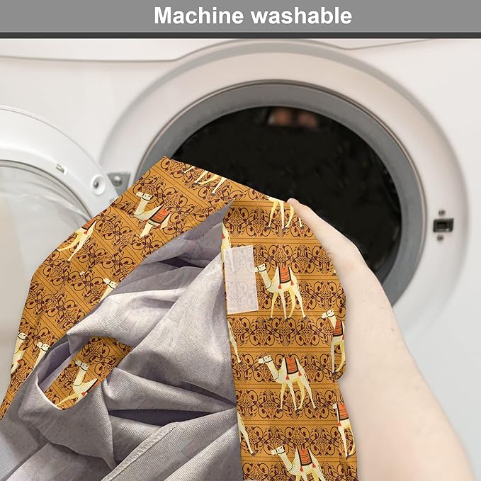 Lunarable Camel Dog Crate Cover, Traditional Pattern with Strokes Desert Animal Repetition in Folk Accessories, Easy to Use Pet Kennel Cover for Medium Large Dogs, 42 Inch, Apricot and Cream