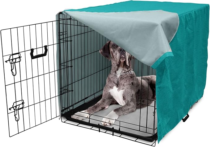 Lunarable Abstract Dog Crate Cover, Classic Monochrome Design Meander Greek Motif Repetition Illustration, Easy to Use Pet Kennel Cover for Medium Large Dogs, 48 Inch, Teal and Dark Turquoise