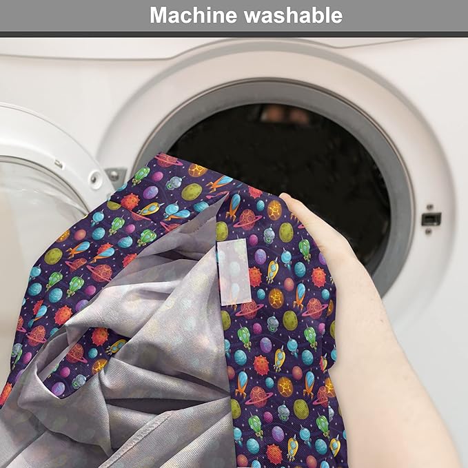 Lunarable Outer Space Dog Crate Cover, Cartoon Planets and Space Ships with Space Background Fun Science, Easy to Use Pet Kennel Cover for Cats & Medium Dogs, 30 Inch, Dark Blue