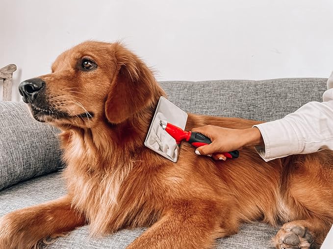 The pet grooming brush works wonders on my golden retriever’s thick coat. It removes loose fur effortlessly and my dog actually enjoys being brushed now.