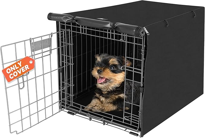 X-ZONE PET Double Door Dog Crate Cover - Polyester Pet Kennel Cover (Fits 24 30 36 42 48 inches Wire Crate) (24 Inch, Black)