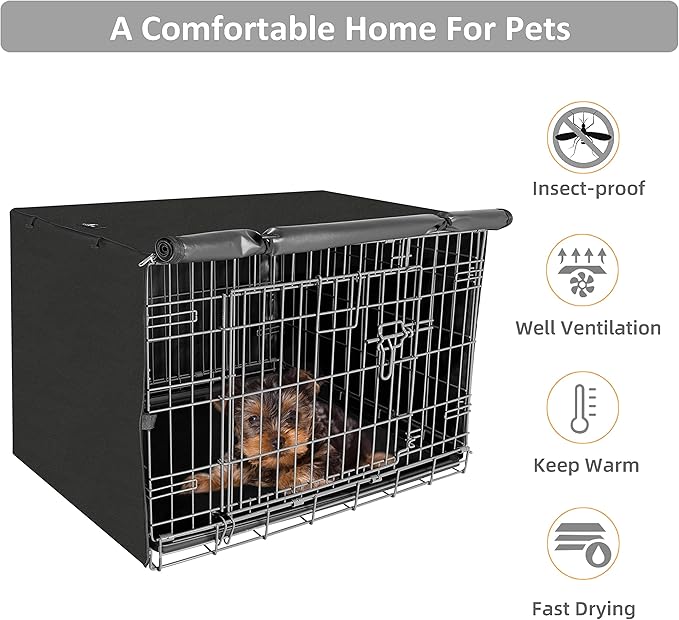 - 【Heavy-Duty & Durable Material】Durable dog kennel cover made of tear resistant and water resistant 420D polyester with PVC coating,which is windproof and durable, prevent damage caused by pet scratching