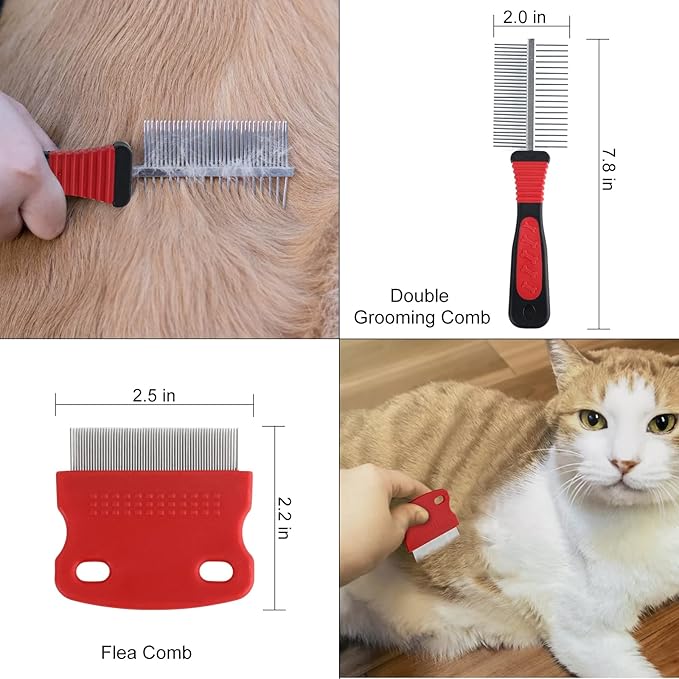 - Good Helper for Pet Hair Removal Grooming: The set includes dematting comb, grooming comb and one-touch hair removal comb.Say goodbye to pet hair with our high-quality stainless steel grooming comb for dogs and cats. Keep your furry friend looking and feeling their best!