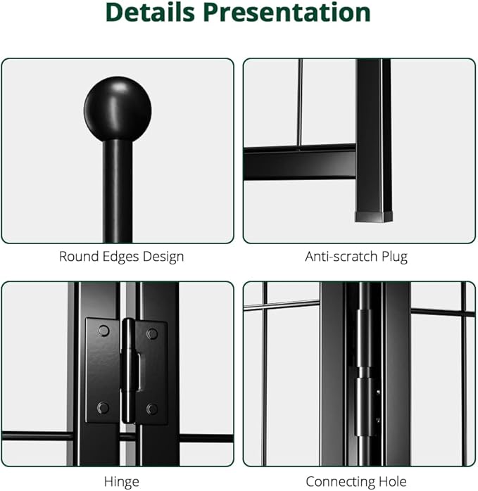 - Stable & Safety: The dog playpen is crafted from heavy-duty thickened iron metal, providing stability and anti-collapse. It stands firm even when your dog leans on it, with no sharp edges and rounded ball heads on metal stakes to protect your dog