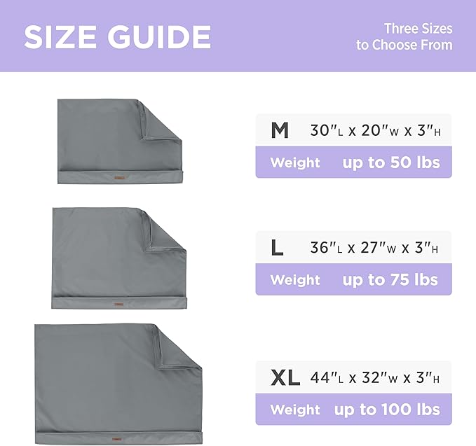 - 36x27x3 Inches Water-Resistant Cover: Made with 100% Oxford fabric, this dog bed cover is Water-Resistant and can be easily washed up in case.