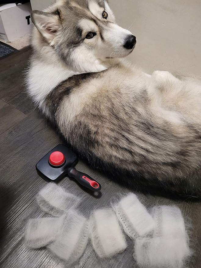 Self Cleaning Slicker TWO in One Brush - Updated Button - Slicker & Undercoat Rake - Remove Shedding Dog Hair, Undercoat & Mats, for Medium & Long Haired Dogs, Great for Husky, GSD