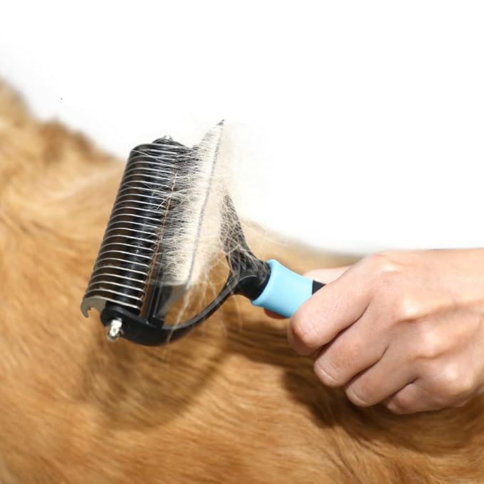 The pet grooming brush works wonders on my golden retriever’s thick coat. It removes loose fur effortlessly and my dog actually enjoys being brushed now.
