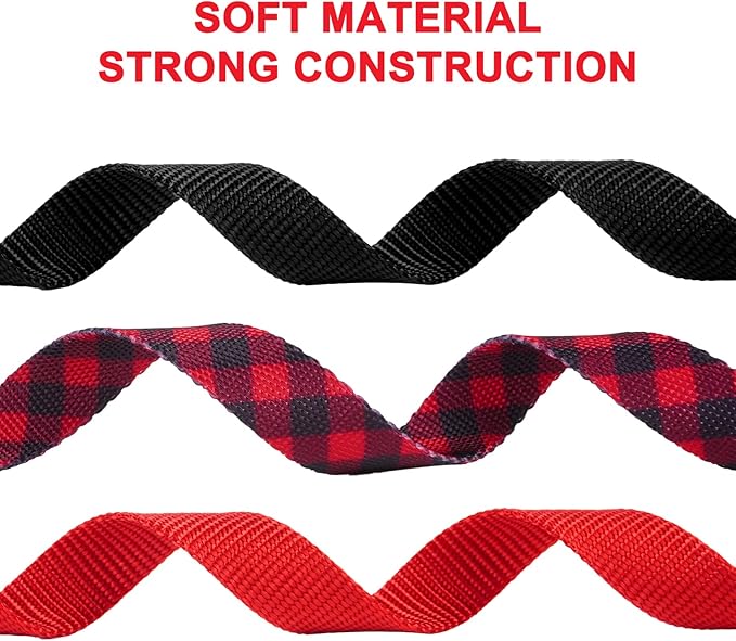 azuza 3 Pack Christmas Nylon Dog Collars Buffalo Check Durable and Comfortable Dog Collars with ID Tag Ring Adjustable for Large Dogs, L (18-26inch)