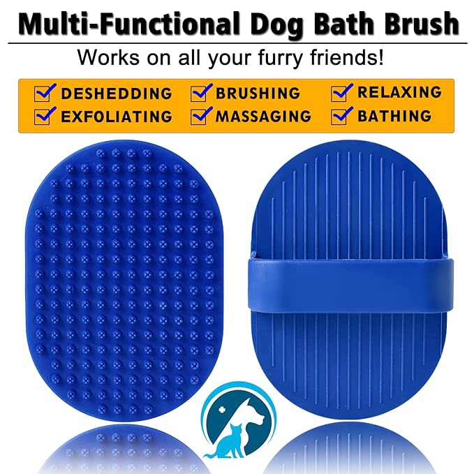 - EASY TO USE & CLEAN - The dog shampoo brush holds onto fur preventing it from flying around and making a mess. To remove hair from the bathing brush, simply turn upside down and tap while gently pulling on the hair. The pet bath brushes is easy to clean, just wash it with water and dry naturally.