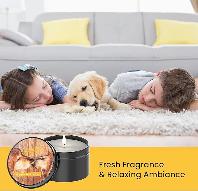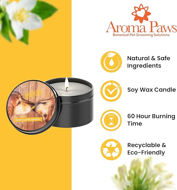 Scented Candle in Tin - Handcrafted Aromatherapy Candle for Pets - Pet-Friendly and No Harsh Chemicals Soy Candle - Burns up to 60 Hours - Honeysuckle Jasmine