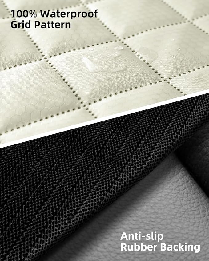 - 100% Waterproof: We clearly know the importance of the waterproof for dog car seat covers. This bench car seat cover was made of upgraded fabric with a water-resistant coating, it also used hot pressing technology instead of quilting, without needle holes to avoid leaking water. No more worried about cheap dog back seat cover ruins your seats.