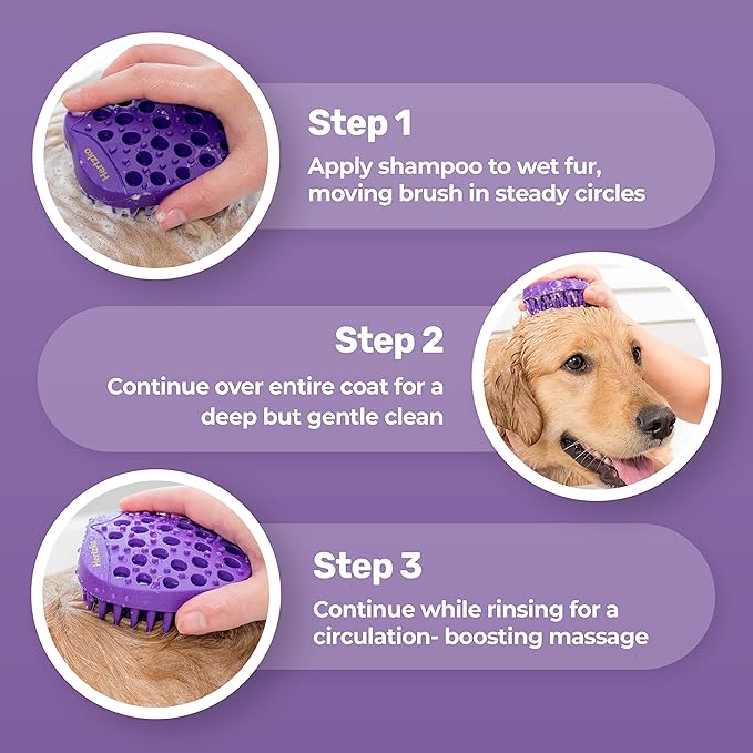 - Versatile – Use wet (as a shampoo brush during baths) or dry (to remove loose fur & provide a circulation-boosting massage)