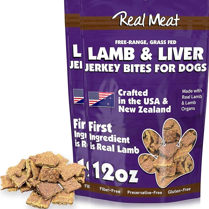 Real Meat Dog Treats - Two 12oz Bag of Bite-Sized Air-Dried Lamb & Liver Jerky for Dogs - Grain-Free Jerky Dog Treats Made up of 95% Human-Grade, Free-Range, Grass Fed Lamb - All-Natural Dog Treats