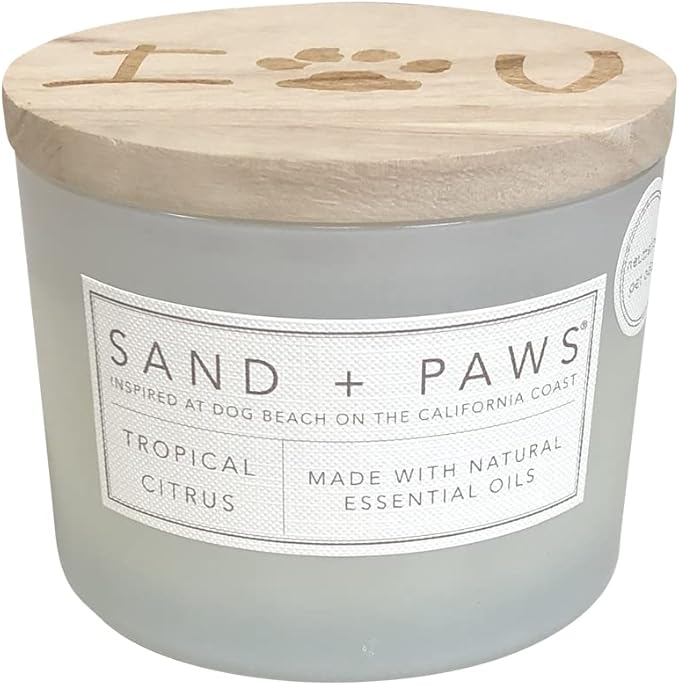Sand + Paws Scented Candle - Tropical Citrus - Additional Scents and Sizes –Luxurious Air Freshening Jar Candles Neutralize pet Odors and Enhance Home décor – 100% Cotton Lead-Free Wicks - 12 oz