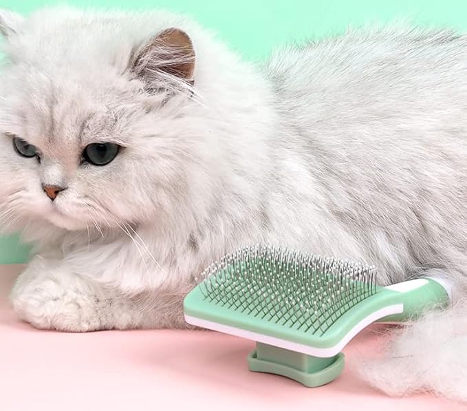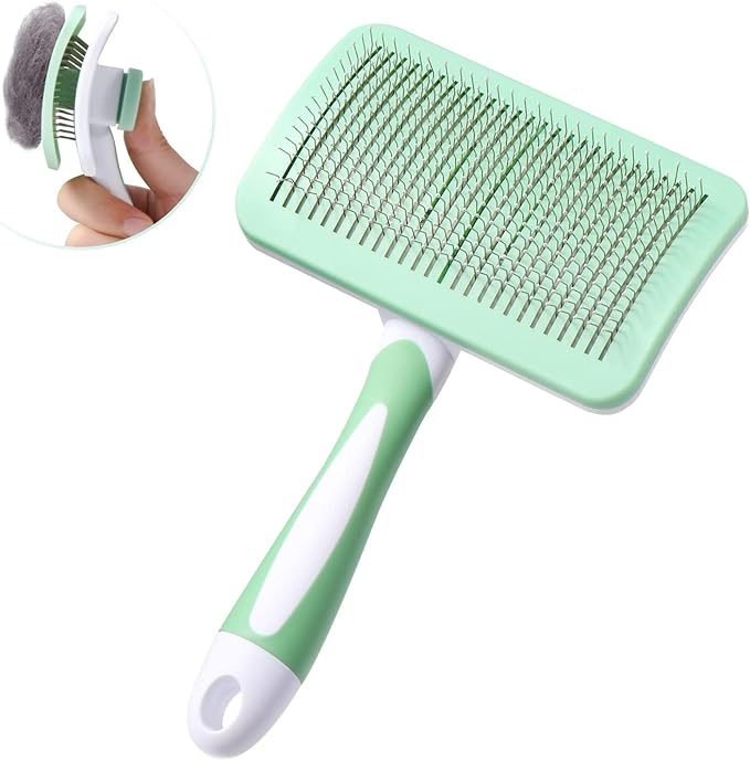Self Cleaning Cat and Dog Grooming Brush for Pets, Dogs Brush with Massage Particles, Cleaning Grooming Brush for All Hair Lengths (Green)