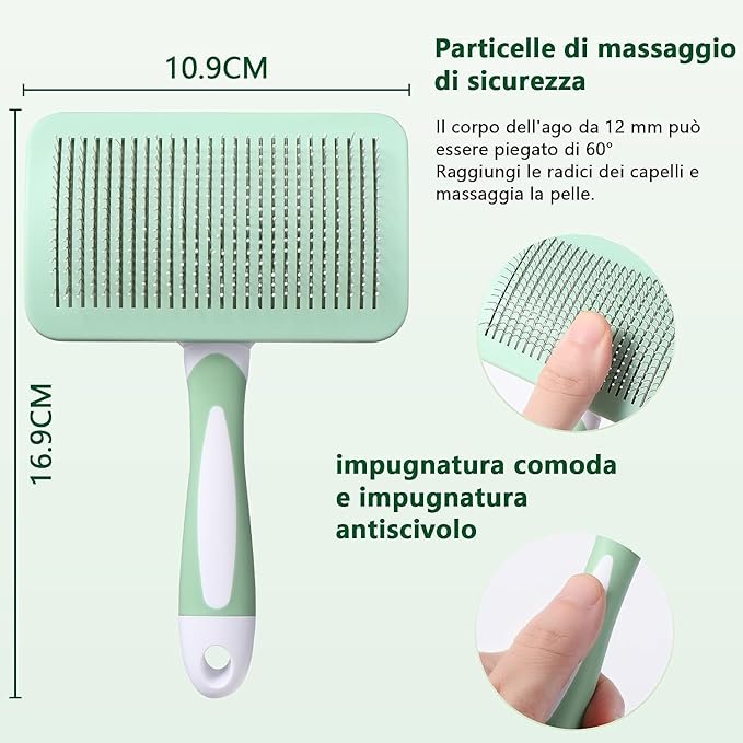 - ★ Easy to clean - When you’re done brushing your pet, simply click the button and the bristles retract back into the brush, making it super simple to remove all the hair from the brush, so it’s ready for the next time use. This dog slicker brush is strong and durable.