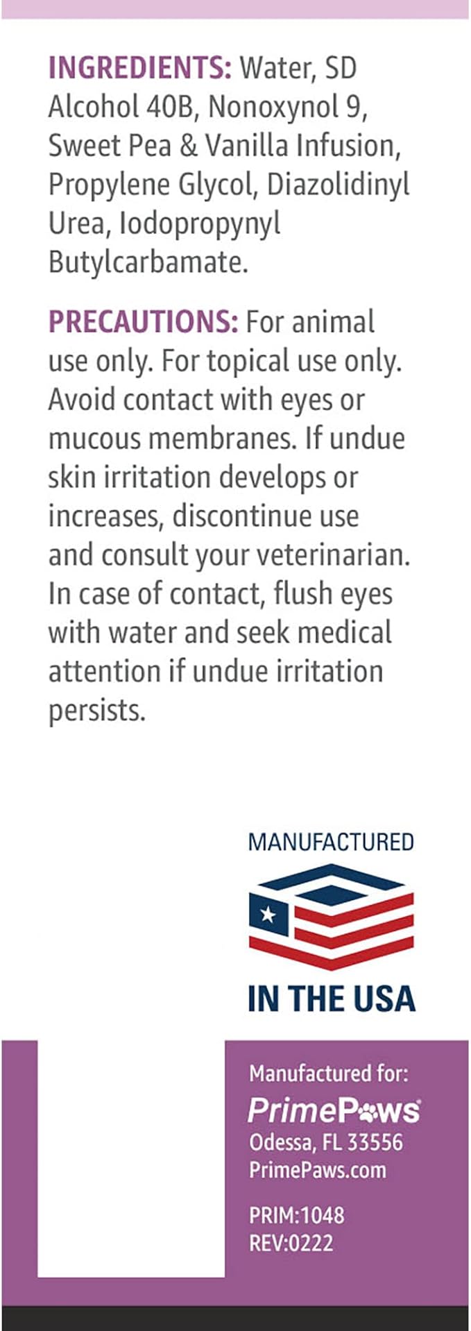 Body Spray for Dogs and Cats - Long Lasting Cat Cologne & Odor Eliminator - Dog Spray Deodorizer Perfume for Grooming & Reducing Static - Sweet Pea & Vanilla Scent - 8 oz, White (PRIM1048)