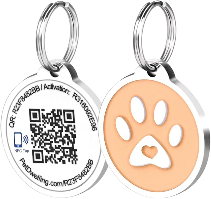 Premium NFC & QR Code Smart ID Tag for Dogs - Easy Scanning, Instant Profile Access, Real-Time Location Alerts(Southern Peach Paw)