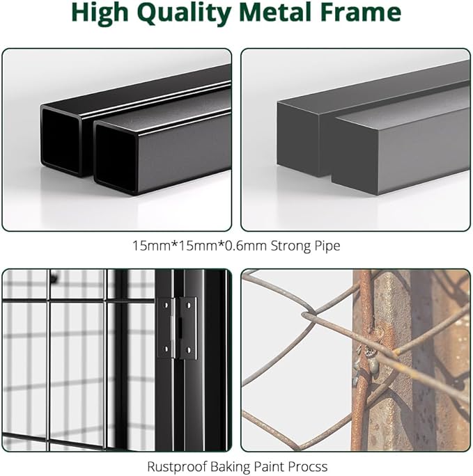 • Waterproof Removable Roof: The dog enclosure outdoor roof is made of UV-resistant and waterproof Oxford cloth, fitting outdoor dog run. Elastic ropes hold it firmly, preventing wind blow-away. The UV-resistant coating prevents fading and cracking