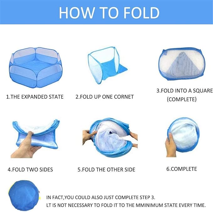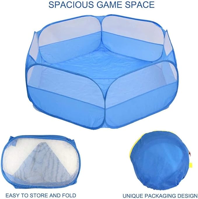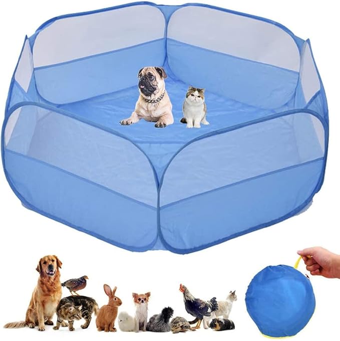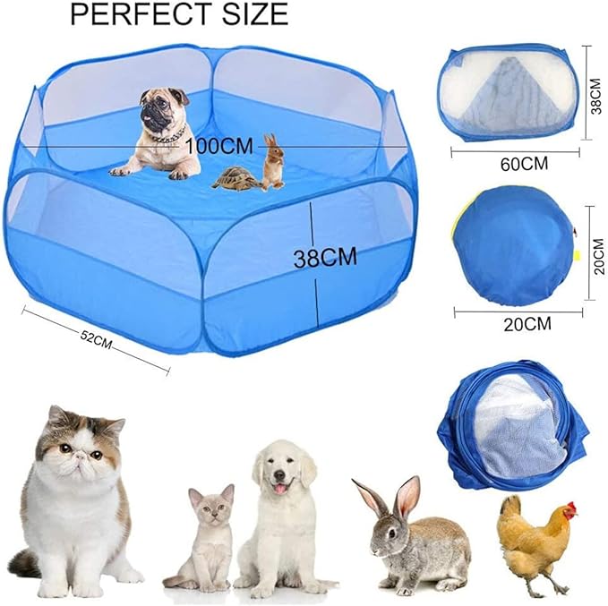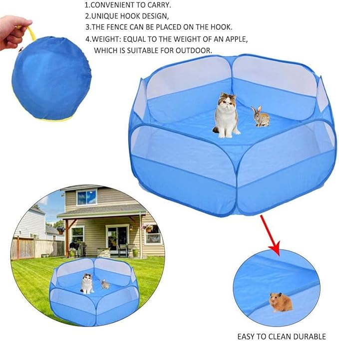Small Animal Playpen,Portable Small Animal Cage Tent Breathable Pet Playpen Cage Tent Pop-Up Outdoor&Indoor Exercise Fence for Hamster Guinea Pig Rabbit Puppy Hedgehog (Blue no Cover)