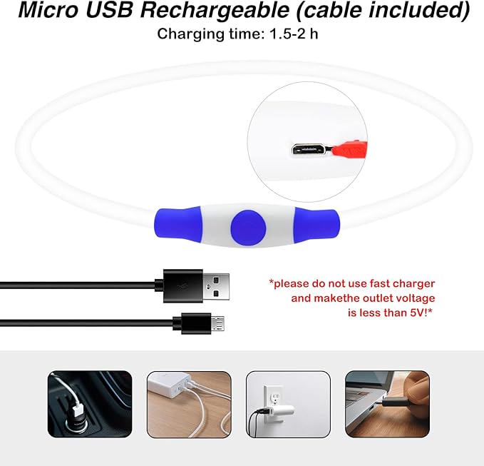 - Safety LED Dog Collar: The light dog collar lights up 360° to help you find your dog quickly in the dark. (If the bulb is damaged, the collar will turn into other colors. If this problem occurs, you can contact us)