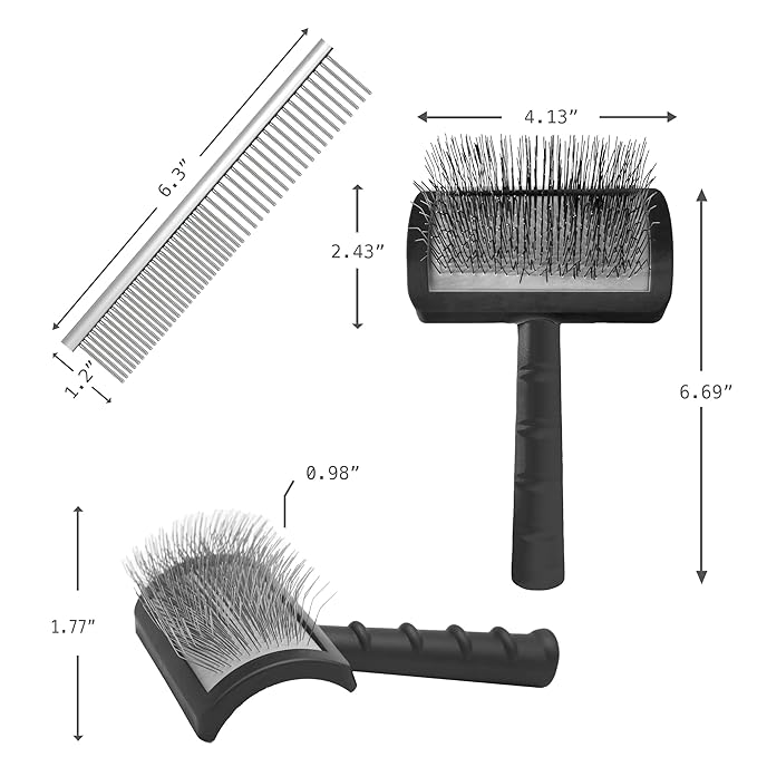 - PERFECT HAIR REMOVAL AND GROOMING SET: The NeatHoiho grooming set includes a slicker brush and a heavy-duty metal comb , so you can groom your dog or cat with comfort at home.The slicker brush and comb set is perfect for keeping short or long hair clean and tangle-free, as well as for removing dirt and dander from pets with sensitive skin