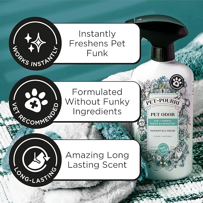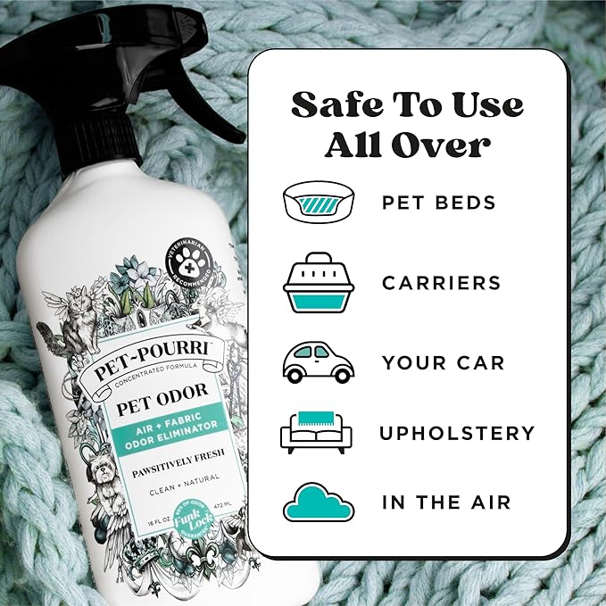 - Instant Freshness, No Lingering Odors: Deodorize pet odors instantly with a few sprays of Pourri Pawsitively Fresh. Works on air, pet bedding, furniture, carpets, and even urine spots for a complete odor refresh without harsh chemicals.