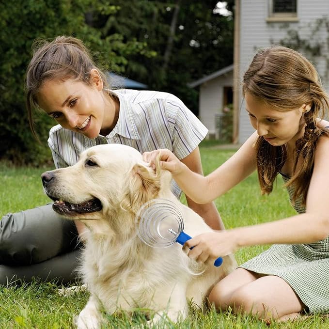 The pet grooming brush works wonders on my golden retriever’s thick coat. It removes loose fur effortlessly and my dog actually enjoys being brushed now.