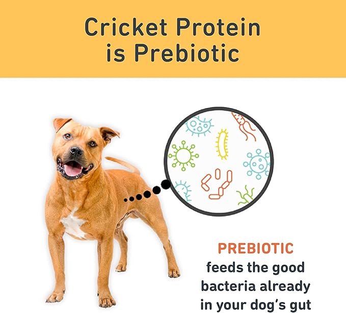 - A FOCUS ON GUT HEALTH - We partnered with Animal Biome to study the impact of cricket protein on your dog's gut health. Cricket protein supports a healthy, balanced level of gut bacteria diversity (gut microbiome) in dogs & acts as a probiotic. You can feel confident about what you feed your dog!