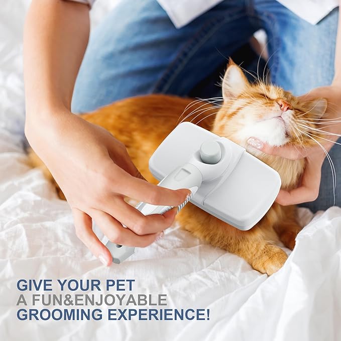 The pet grooming brush works wonders on my golden retriever’s thick coat. It removes loose fur effortlessly and my dog actually enjoys being brushed now.