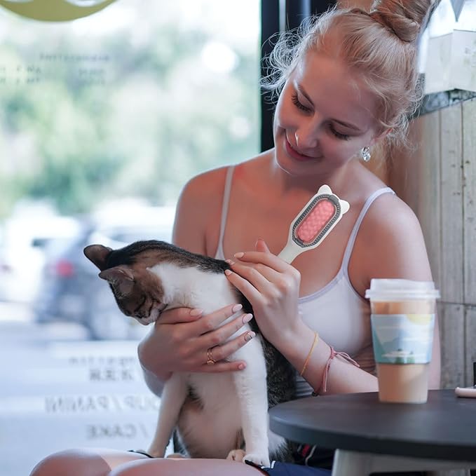 WishLotus Pet Cleaning Hair Removal Comb, 4 in 1 Universal Cat Brush Multifunctional Portable Stylish Durable Pet Comb Brush, Bristle Tool for Cleaning Cat and Dog Hair and Grooming (Pink)
