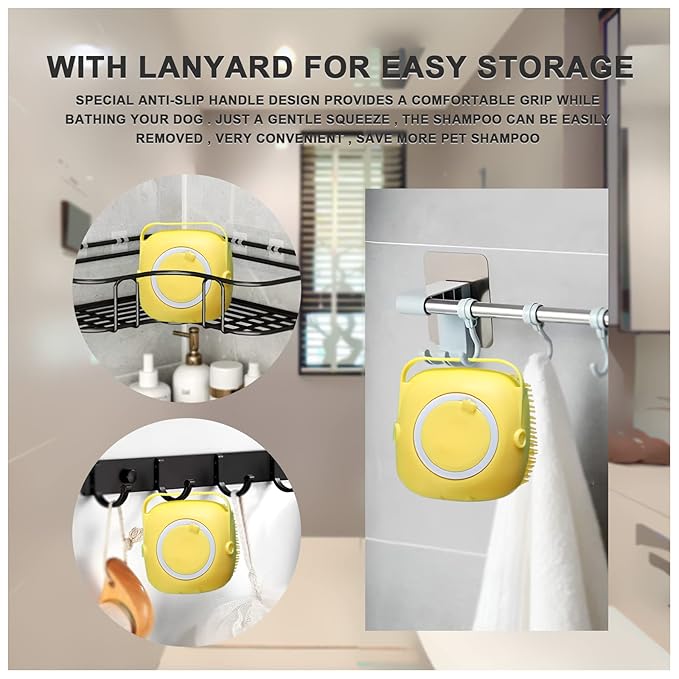 BLMHTWO Pet Bath Brush Dog Scrubber for Bath Pet Shampoo Brush Dog Bathing Brush Pet Bubble Brush with Silicone Loop Handle for Long Short Haired Dogs and Cats Yellow
