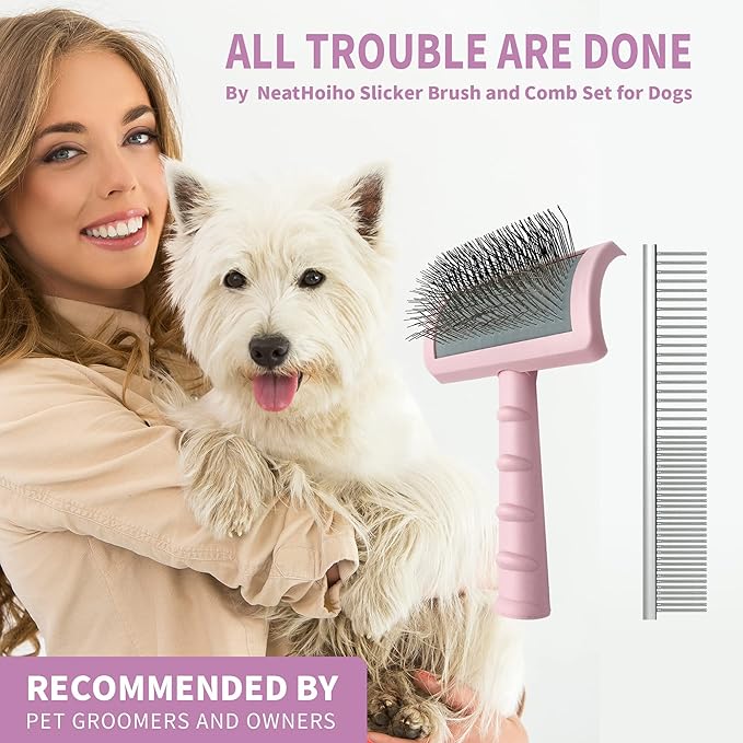 - PERFECT HAIR REMOVAL AND GROOMING SET: The NeatHoiho grooming set includes a slicker brush and a heavy-duty metal comb , so you can groom your dog or cat with comfort at home.The slicker brush and comb set is perfect for keeping short or long hair clean and tangle-free, as well as for removing dirt and dander from pets with sensitive skin