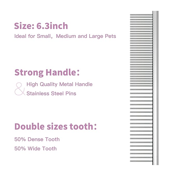 - 2 IN 1 STAINLESS STEEL COMB: The pet comb has high quality anti-static stainless steel round teeth that are strong enough. Our dog grooming comb features round teeth that break up tangles and effectively remove loose hair, dander dirt trapped beneath fur. NeatHoiho cat comb naturally support the health of your furry best friend by boosting circulation