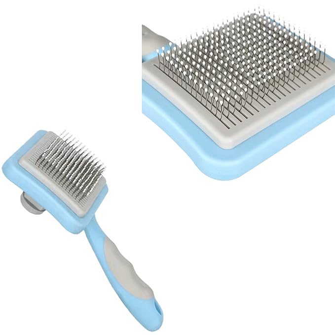 IOO Grooming Brush For Cat And Dog, Self Cleaning Slicker Brushes For Pet, Pet Grooming Brush Can Gently Removes Loose Undercoat, Mats Tangled Hair Slicker Brush for Pet Massage Cleaning (blue)