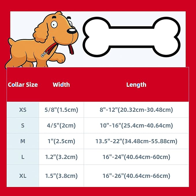 - Durable Dog Collar Size: Adjustable flower dog collar for large dogs & dog collar for small dogs. Collar for dog size-XS(5/8"Wid*8"~12"Len), S(4/5"Wid*10"~16"Len), M(1"Wid*13.5"~22"Len), L(1.2"WId*16"~24"Len), XL(1.5"Wid*16"-26"Len)