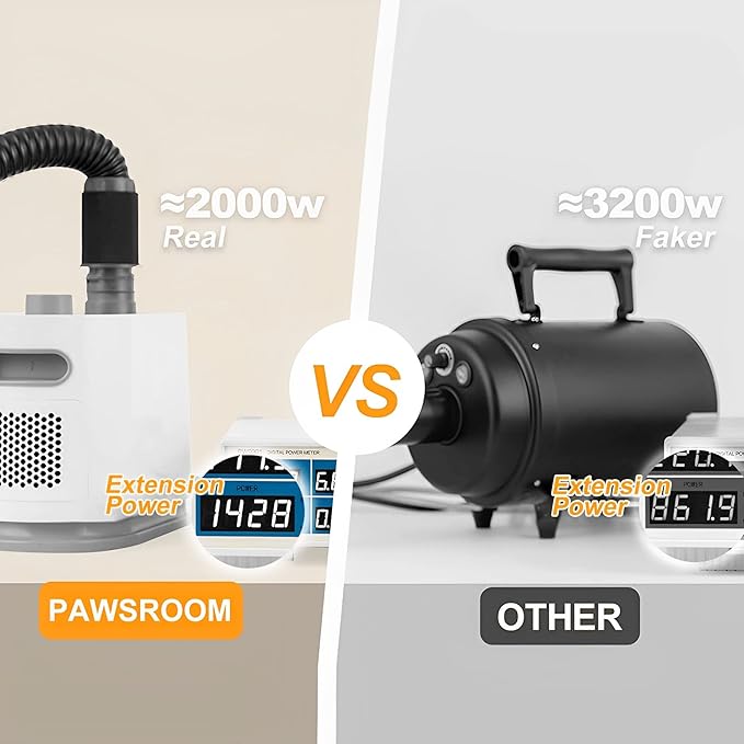 - 【Multi-functional Dryer】Dog hair force blaster dryer has 3 level heating function, 2000W power, 30-50m/s wind Speed for fast dry, 2 soft and hard tubes release your hand.