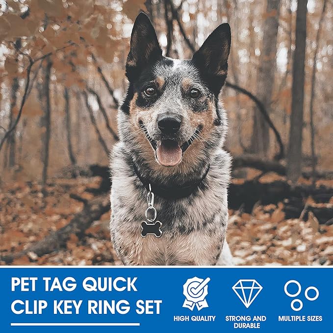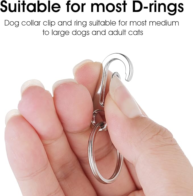 - 【Wide Application】It is easy to move the clip, to quiet tag from jingling at night, working for most cats and dogs. Dog ID tag clips can be firmly attached to dog collars, suitable for dog rolling, running, jumping, or fetching, the ID tag will always remain securely in place.